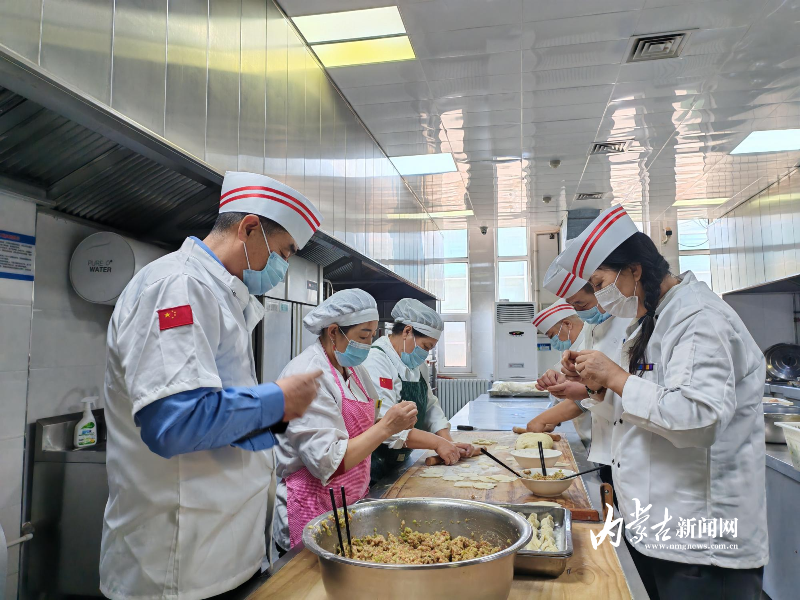 在孫磊的身后,來自內(nèi)蒙古各地的同事們,操著不同的方言熱鬧忙碌地包著餃子。再過一會兒,就到午餐時間了。大家用忙碌和充實(shí)的工作,為春節(jié)堅守的乘務(wù)員們奉獻(xiàn)一個溫馨的春節(jié)。