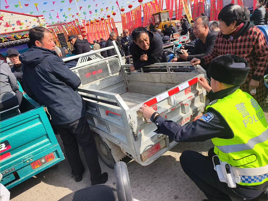 活動(dòng)現(xiàn)場(chǎng),民輔警借助戲場(chǎng)人流集中優(yōu)勢(shì),向群眾發(fā)放宣傳資料,用通俗易懂的語言講解電動(dòng)三輪車違法載人、無牌無證、不戴安全頭盔、農(nóng)用車違規(guī)載客等交通違法行為的危害,結(jié)合轄區(qū)典型事故案例以案說法,提醒群眾摒棄交通陋習(xí),自覺遵守交通法規(guī)。