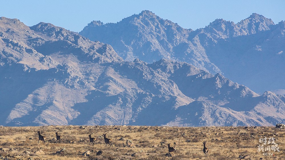 △巖羊是國家二級(jí)保護(hù)動(dòng)物,因攀登本領(lǐng)高超被譽(yù)為“峭壁精靈”?!稌r(shí)政新聞眼》恰巧捕捉到它們跳躍的身影。(總臺(tái)央視記者陶鵬飛拍攝)