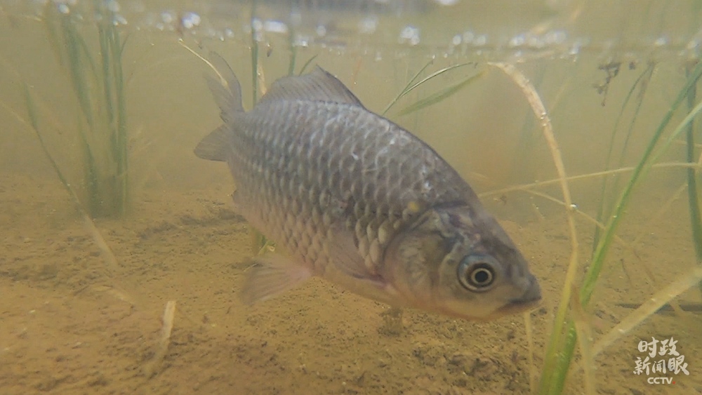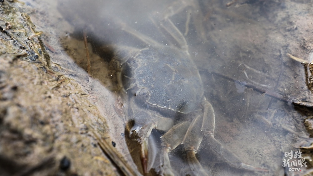 △魚蝦蟹在稻田里游動(dòng),既松動(dòng)泥土幫助水稻生長,又能提供肥料。(總臺(tái)央視記者范凱拍攝)