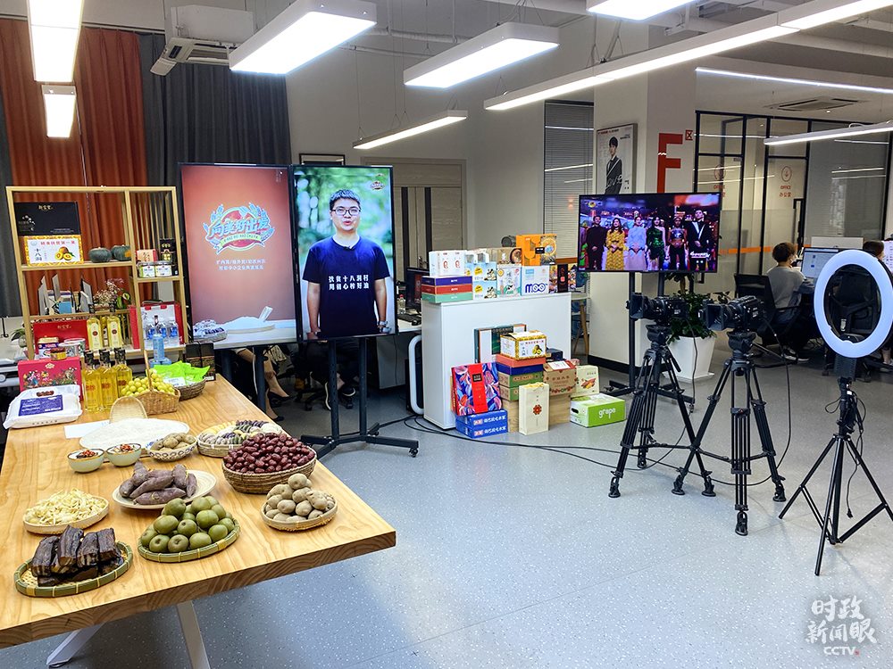 △園區(qū)正準(zhǔn)備做扶貧農(nóng)產(chǎn)品銷售直播。(總臺央視記者郭曉龍拍攝)