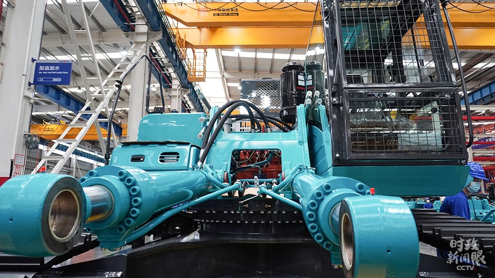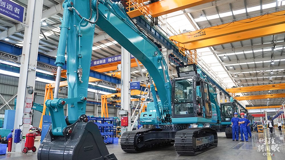 △山河智能生產(chǎn)車間組裝的大型挖掘機,能適應(yīng)多種復(fù)雜地形作業(yè)。(總臺央視記者郭曉龍拍攝)