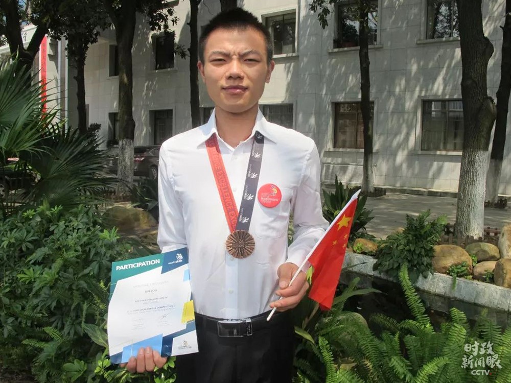 △鄒彬在第43屆世界技能大賽砌筑項(xiàng)目獲得優(yōu)勝獎。