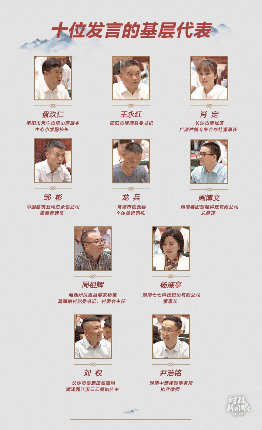 座談會上,有10位基層干部群眾代表作了發(fā)言。他們來自湖南省內(nèi)的多個領(lǐng)域。