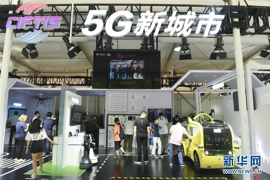 觀眾在2020年中國國際服務(wù)貿(mào)易交易會(huì)5G通信服務(wù)專題展區(qū)參觀(2020年9月7日攝)。新華社記者魯鵬攝