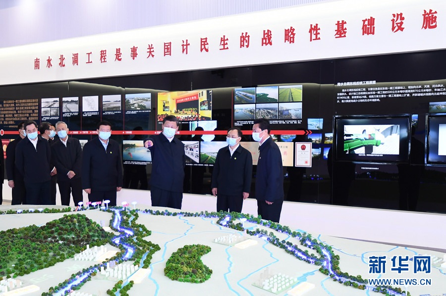 一個(gè)大型沙盤(pán)模型直觀地呈現(xiàn)了中國(guó)大地上水資源大范圍大規(guī)模跨區(qū)域調(diào)配的壯闊景象,習(xí)近平總書(shū)記駐足凝望——