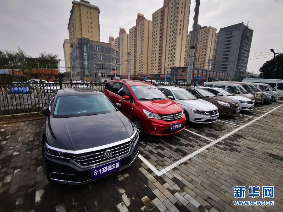 圖為以蔡國(guó)強(qiáng)等人為首的黑社會(huì)性質(zhì)組織案件、以吳領(lǐng)會(huì)為首的黑社會(huì)性質(zhì)組織案中的部分涉案車(chē)輛(11月5日攝)。新華社記者 姚友明 攝