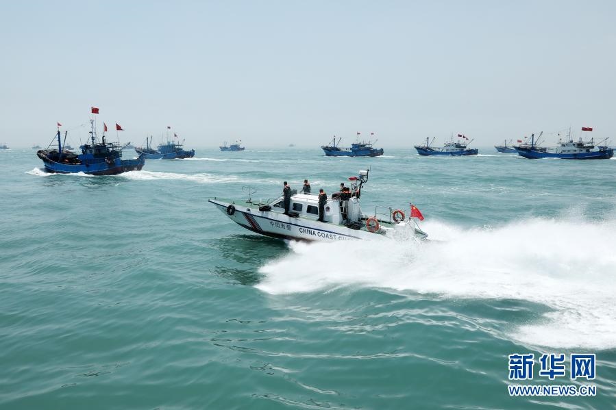 海警執(zhí)法員加強(qiáng)海域巡邏,防止黑惡勢(shì)力滋擾作業(yè)漁船(8月16日攝)。新華社發(fā)(翟少華攝)