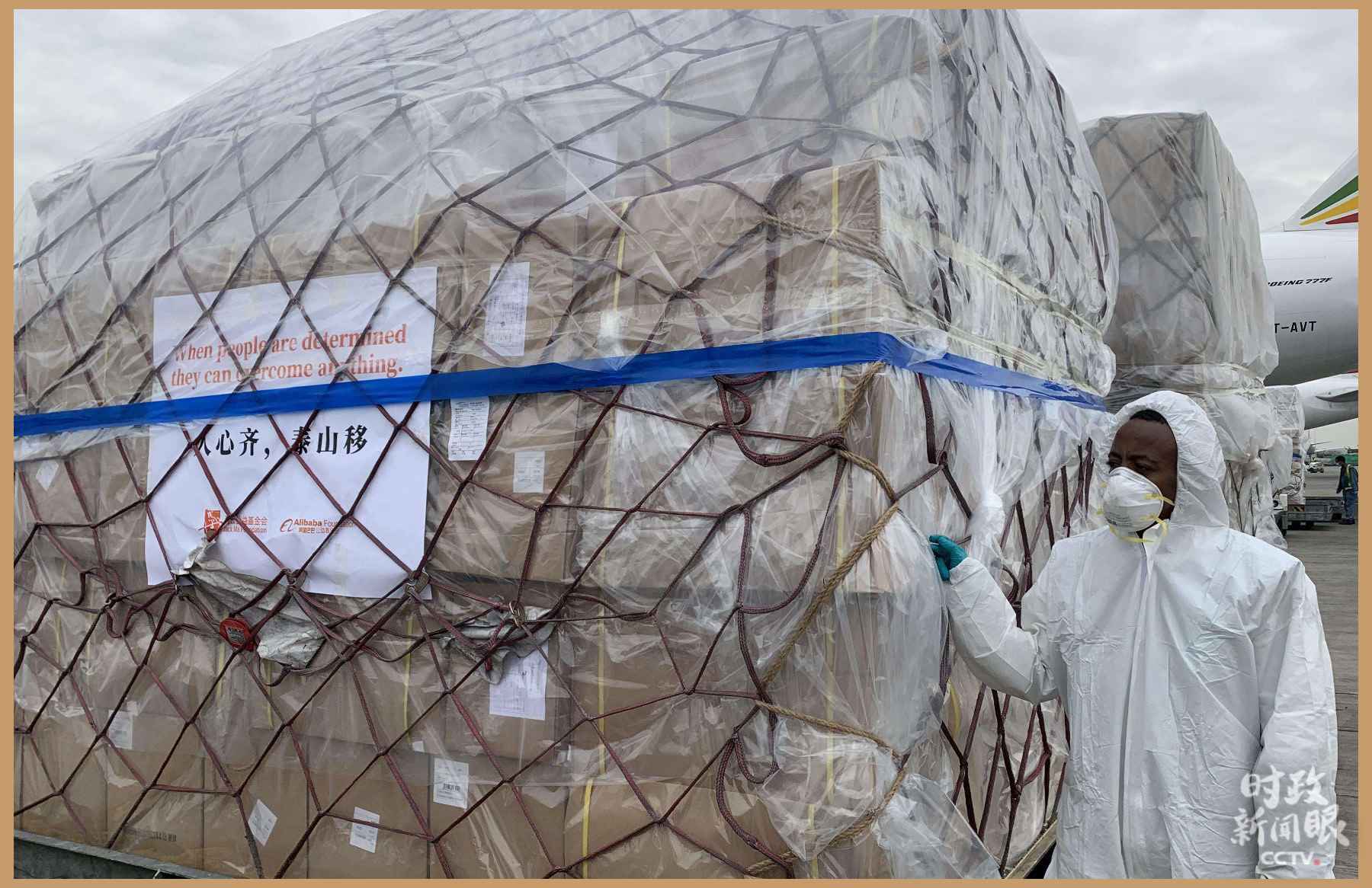△2020年3月22日,用于支援非洲54國(guó)抗擊疫情的中國(guó)援助物資運(yùn)抵埃塞俄比亞首都亞的斯亞貝巴國(guó)際機(jī)場(chǎng)。