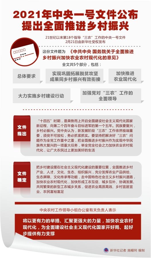 文件指出,“十四五”時期,是乘勢而上開啟全面建設(shè)社會主義現(xiàn)代化國家新征程、向第二個百年奮斗目標(biāo)進軍的第一個五年。民族要復(fù)興,鄉(xiāng)村必振興。黨中央認為,新發(fā)展階段“三農(nóng)”工作依然極端重要,須臾不可放松,務(wù)必抓緊抓實。要堅持把解決好“三農(nóng)”問題作為全黨工作重中之重,把全面推進鄉(xiāng)村振興作為實現(xiàn)中華民族偉大復(fù)興的一項重大任務(wù),舉全黨全社會之力加快農(nóng)業(yè)農(nóng)村現(xiàn)代化,讓廣大農(nóng)民過上更加美好的生活。