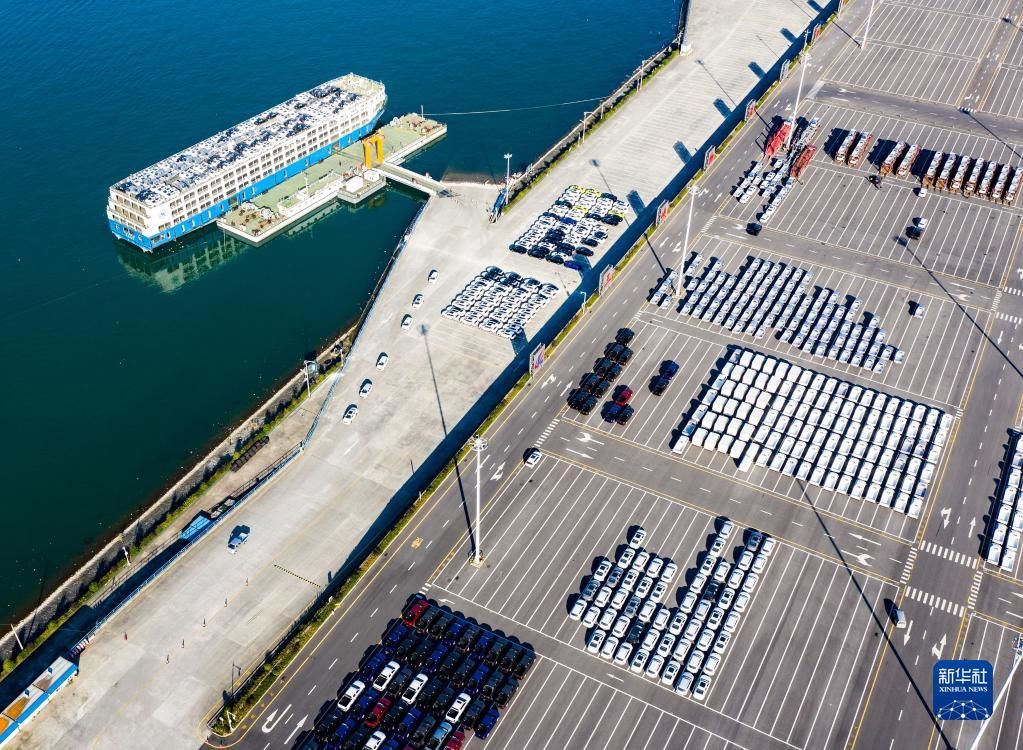 這是三峽庫區(qū)湖北省宜昌市秭歸縣秭歸港車輛分撥轉(zhuǎn)運現(xiàn)場(2020年11月13日攝,無人機(jī)照片)。新華社發(fā)(鄭家裕攝)