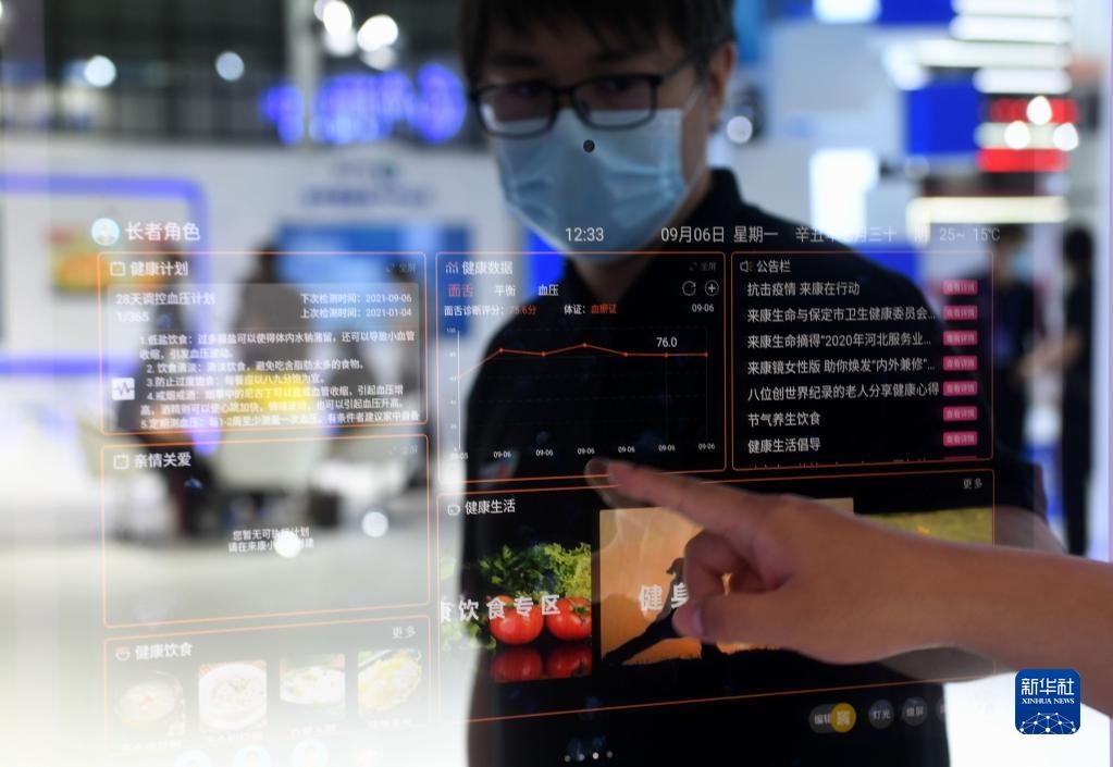 9月6日至8日,2021中國(guó)國(guó)際數(shù)字經(jīng)濟(jì)博覽會(huì)在河北石家莊舉行。這是工作人員在博覽會(huì)上操作智能鏡子(9月6日攝)。新華社記者 王曉 攝