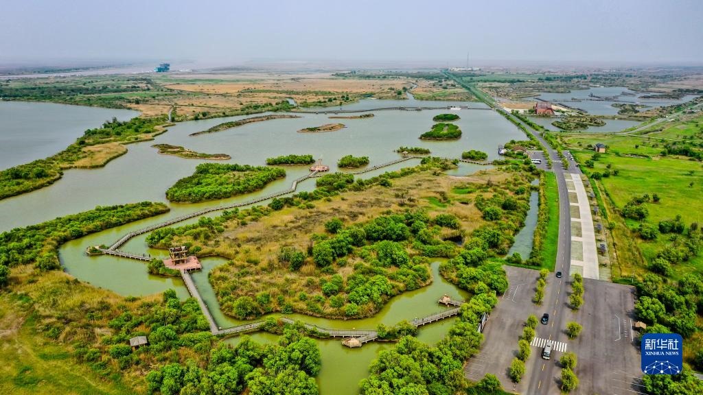 這是5月13日拍攝的山東黃河三角洲國(guó)家級(jí)自然保護(hù)區(qū)景色(無人機(jī)照片)。新華社記者 郭緒雷 攝