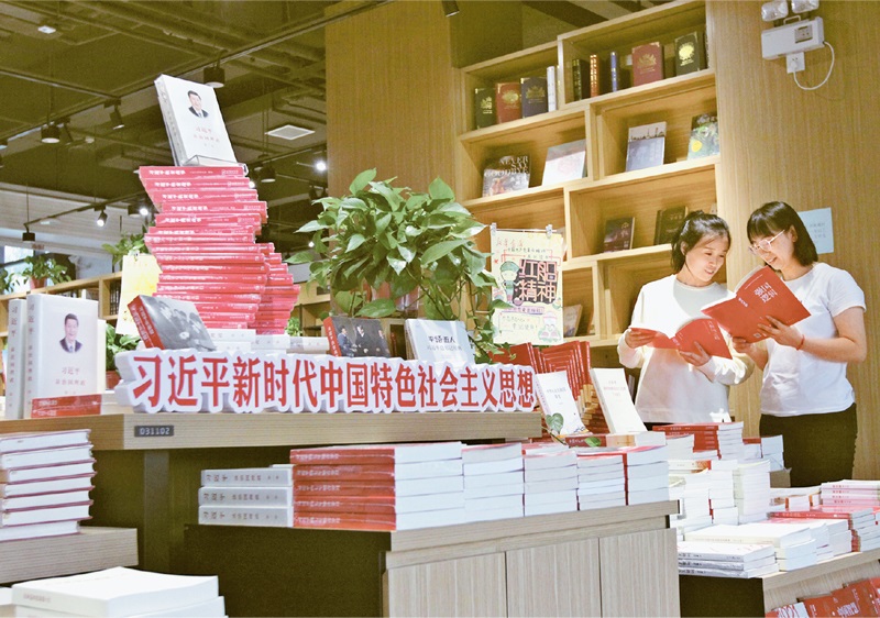 黨確立習(xí)近平同志黨中央的核心、全黨的核心地位,確立習(xí)近平新時(shí)代中國(guó)特色社會(huì)主義思想的指導(dǎo)地位,反映了全黨全軍全國(guó)各族人民共同心愿,對(duì)新時(shí)代黨和國(guó)家事業(yè)發(fā)展、對(duì)推進(jìn)中華民族偉大復(fù)興歷史進(jìn)程具有決定性意義。圖為2021年10月4日,河南省焦作市博愛(ài)縣新華書(shū)店里,讀者在閱讀習(xí)近平新時(shí)代中國(guó)特色社會(huì)主義思想相關(guān)書(shū)籍。 中新社發(fā) 程全/攝
