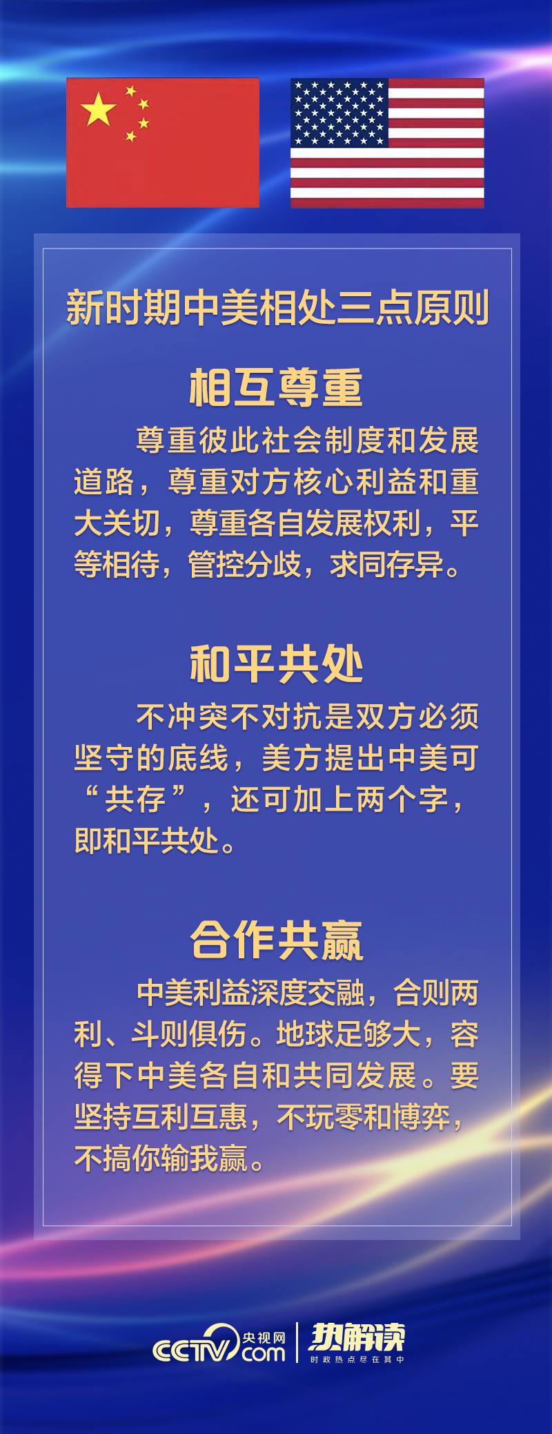 對(duì)于中美在一些問題上的不同看法,習(xí)主席反復(fù)強(qiáng)調(diào),要聚焦合作、管控分歧。增多接觸、加強(qiáng)溝通,有助于準(zhǔn)確了解彼此的政策意圖,避免誤解誤判。