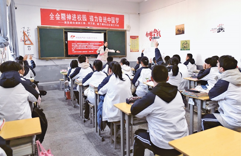 2021年11月24日,安徽省安慶市大觀區(qū)集賢路街道團(tuán)工委、碟子塘社區(qū)紅領(lǐng)工作站聯(lián)合開展黨的十九屆六中全會(huì)精神宣講進(jìn)校園活動(dòng)。中新社發(fā)項(xiàng)順平/攝