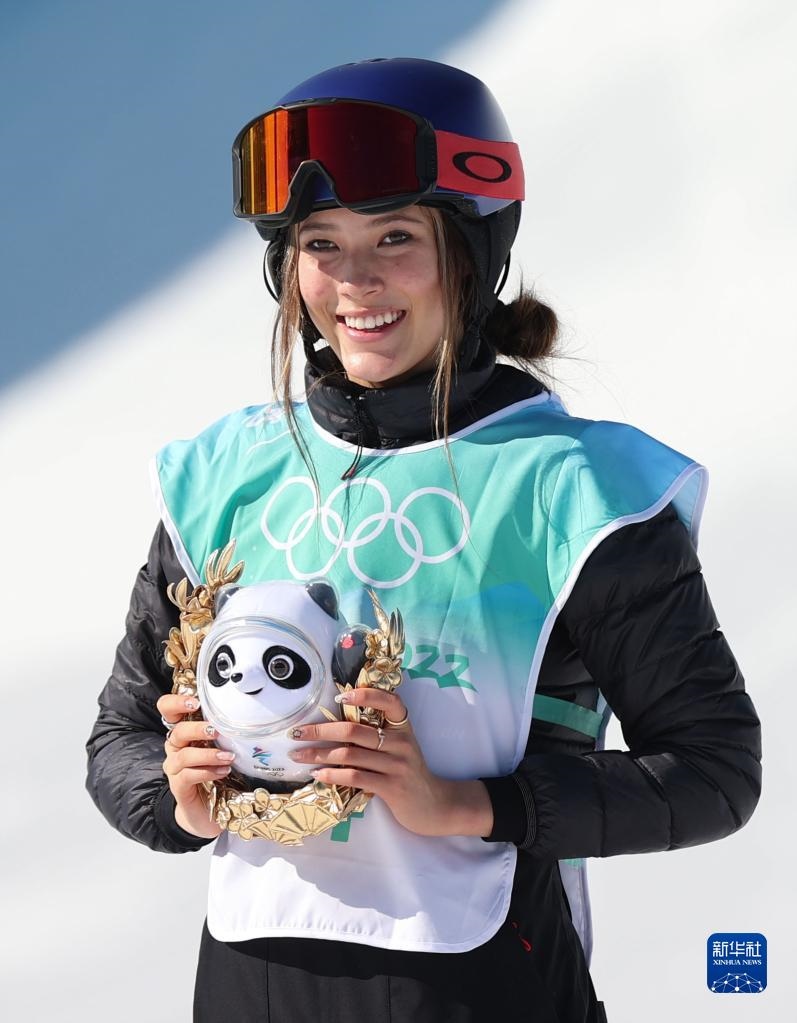 2月8日,自由式滑雪女子大跳臺比賽冠軍、中國選手谷愛凌在頒發(fā)紀(jì)念品儀式上。新華社記者 丁旭 攝