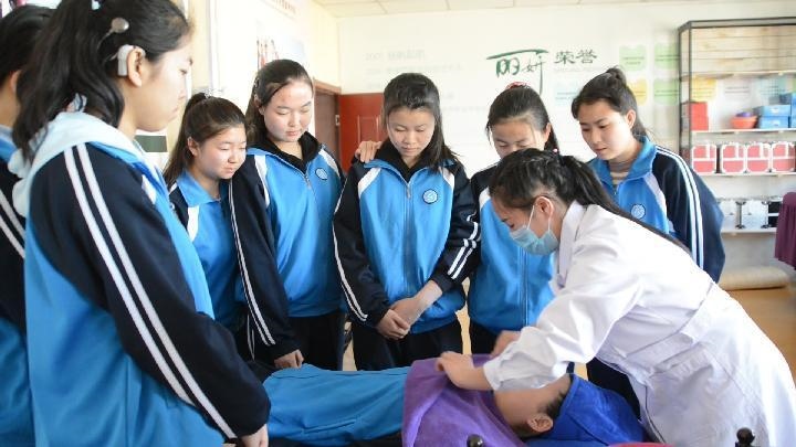 △王雅妮在美容課上進(jìn)行演示教學(xué)。