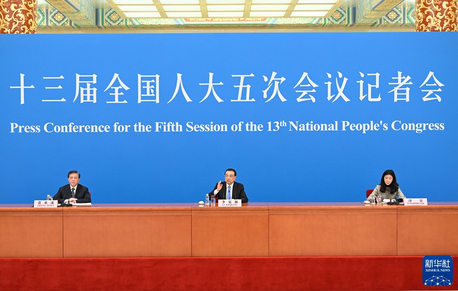 3月11日上午,十三屆全國人大五次會議在北京人民大會堂舉行記者會,國務(wù)院總理李克強應(yīng)大會發(fā)言人張業(yè)遂的邀請出席記者會,并回答中外記者提問。新華社記者 李鑫 攝