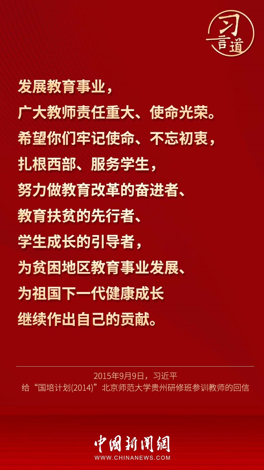9月7日,習(xí)近平總書記回信勉勵(lì)北京師范大學(xué)“優(yōu)師計(jì)劃”師范生,努力成為黨和人民滿意的“四有”好老師。十八大以來,習(xí)近平多次通過書信的形式,對(duì)教師群體寄予殷切期望。