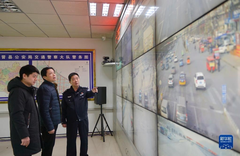 河北省寧晉縣紀(jì)檢干部借助公安機(jī)關(guān)交通監(jiān)控系統(tǒng),實時查看公車運(yùn)行軌跡,嚴(yán)查公車私用問題( 2018年12月29日攝)。新華社記者 牟宇 攝