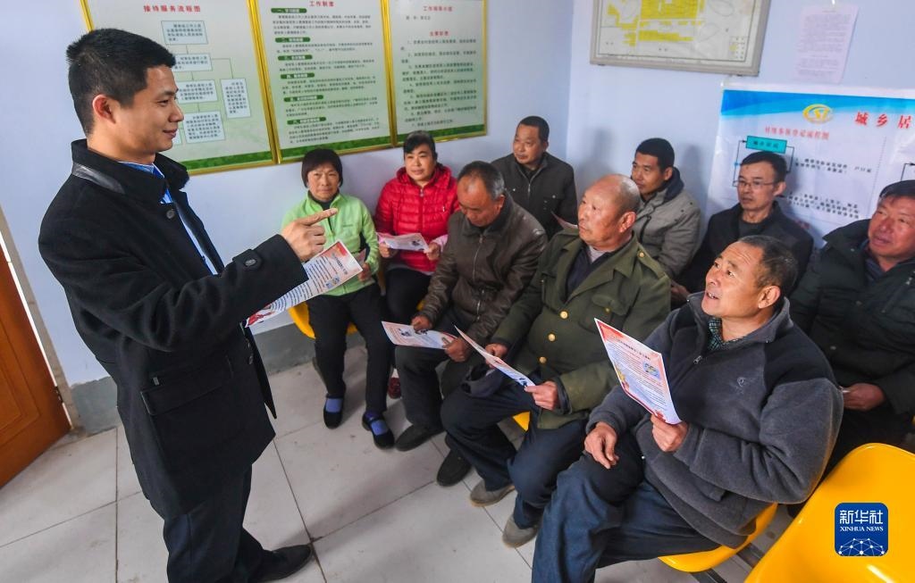 河北景縣紀(jì)檢監(jiān)察干部為杜橋鎮(zhèn)西徐莊村村民講解監(jiān)察法知識(2018年4月4日攝)。新華社記者 李曉果 攝