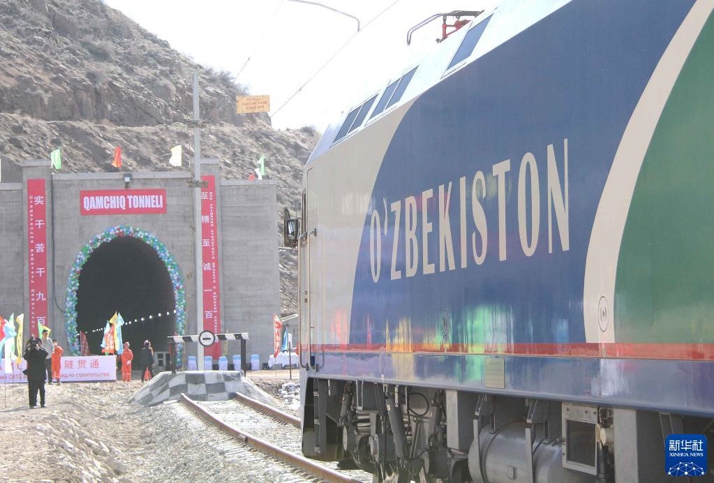 2016年2月27日,烏茲別克斯坦安格連-帕普鐵路卡姆奇克隧道全隧貫通。這是一列專列停在隧道進口。新華社記者 沙達(dá)提 攝