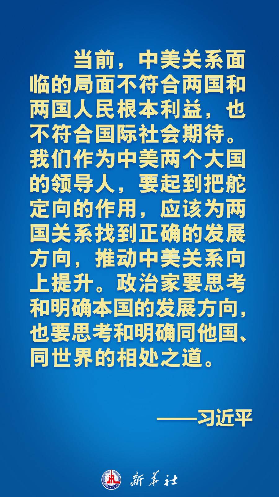 海報丨習(xí)近平:找到中美關(guān)系發(fā)展正確方向,推動中美關(guān)系重回健康穩(wěn)定發(fā)展軌道