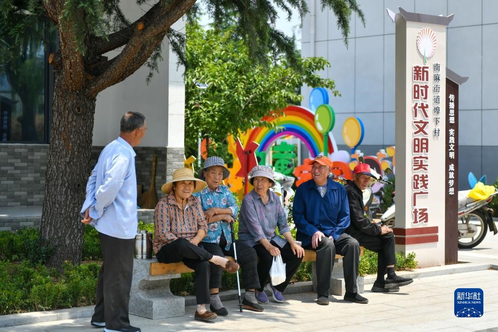 山東省沂源縣南麻街道埠下村村民在民生綜合體活動廣場休息(2022年6月15日攝)。新華社記者 朱崢 攝