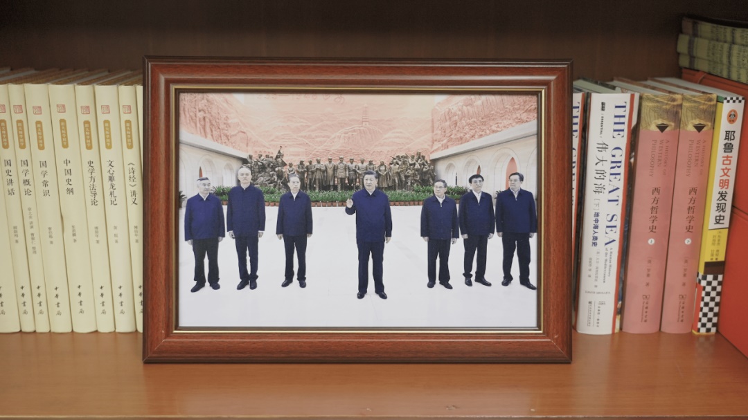 還有一張?zhí)貏e的照片,從習(xí)近平主席發(fā)表二〇一九年新年賀詞時起,就一直擺放在書架上。