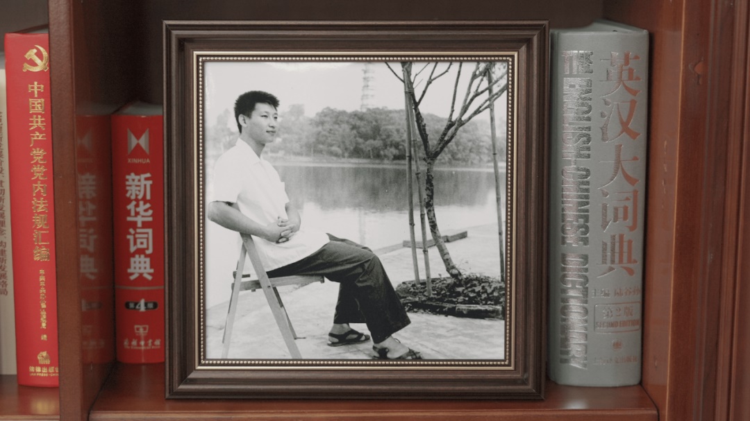 書架上,還增加了兩張習(xí)近平總書記年輕時的照片。