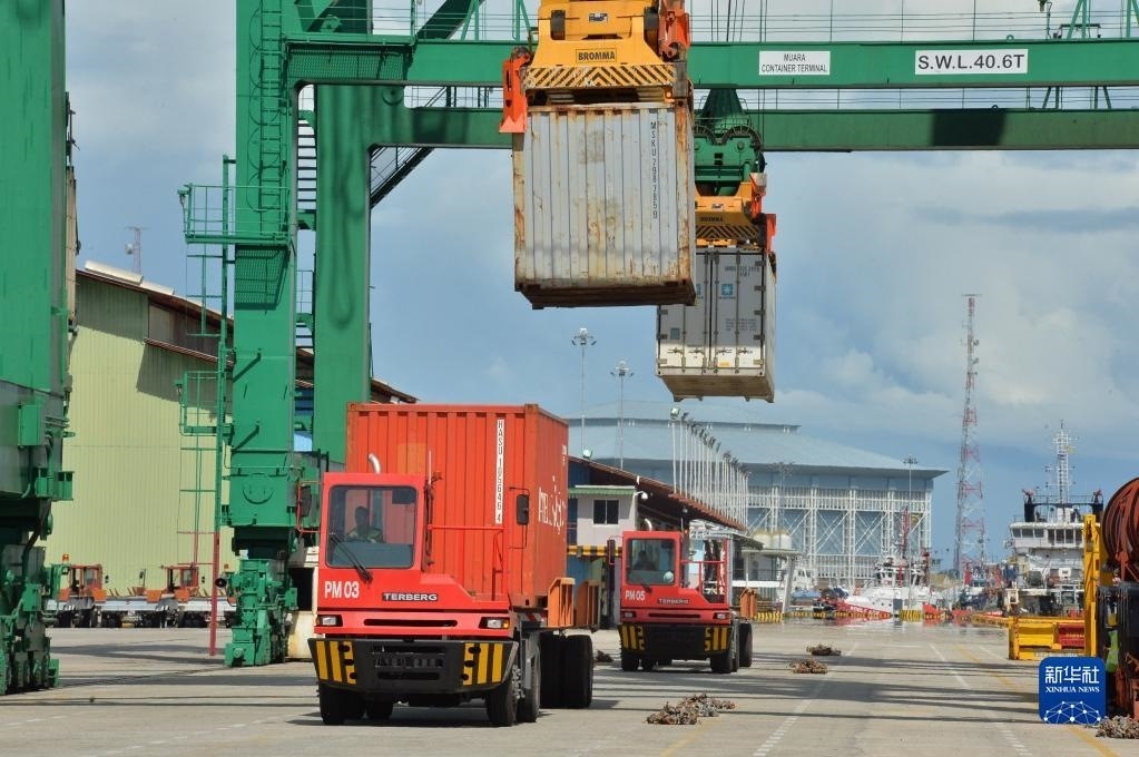 這是2022年1月1日拍攝的正在進(jìn)行集裝箱裝卸作業(yè)的文萊摩拉港碼頭。文萊摩拉港由中國(guó)和文萊合資企業(yè)——摩拉港有限公司運(yùn)營(yíng)。2022年1月1日,區(qū)域全面經(jīng)濟(jì)伙伴關(guān)系協(xié)定(RCEP)生效實(shí)施。新華社發(fā)(杰弗里·黃攝)