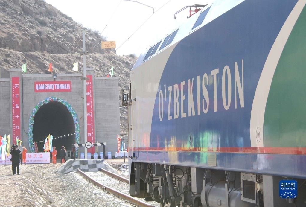 2016年2月27日,一列專列停在烏茲別克斯坦安格連-帕普鐵路卡姆奇克隧道進(jìn)口。中國(guó)政府優(yōu)買項(xiàng)目、中鐵隧道集團(tuán)承擔(dān)的中亞最長(zhǎng)隧道——烏茲別克斯坦安格連-帕普鐵路卡姆奇克隧道2月27日全隧貫通。新華社記者 沙達(dá)提 攝