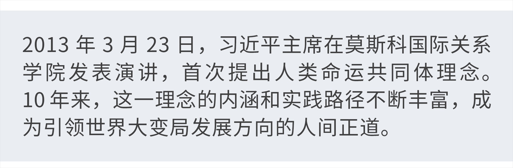 10年來,習(xí)近平主席以深邃的歷史眼光和博大的天下情懷,相繼提出共建“一帶一路”倡議、全球發(fā)展倡議、全球安全倡議、全球文明倡議,豐富了人類命運(yùn)共同體理念的內(nèi)涵和實(shí)踐路徑,為應(yīng)對世界之變、時代之變、歷史之變提供了中國方案。