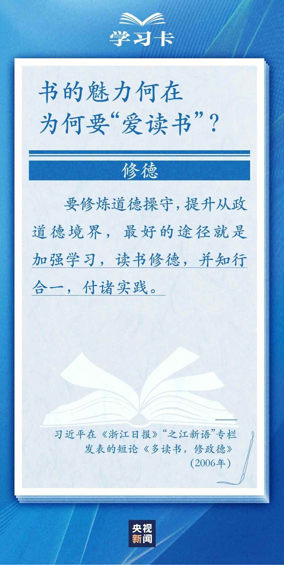 今天(4月23日)是世界讀書日。習(xí)近平曾多次講述和書籍的不解之緣,分享讀書學(xué)習(xí)的感悟,倡導(dǎo)“愛(ài)讀書、讀好書、善讀書”。書的魅力何在,為何要“愛(ài)讀書”?如何能“選好書”?怎樣“善讀書”?一起學(xué)習(xí)↓