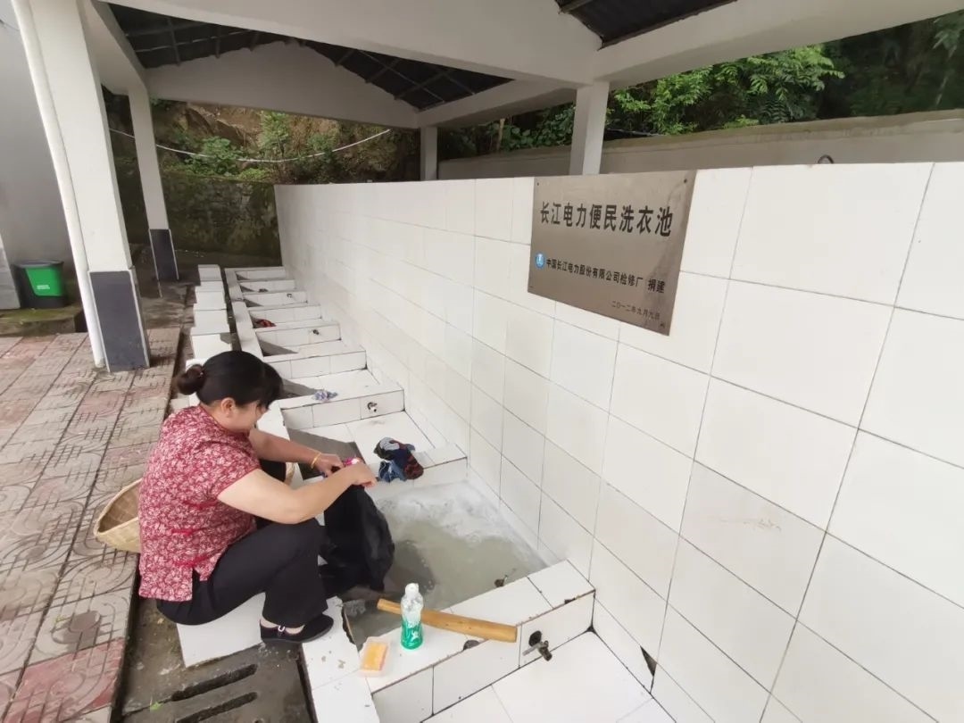 在許家沖村廣場(chǎng),村民仍然保留著用棒槌洗衣的傳統(tǒng)。過(guò)去是在江邊洗衣服,現(xiàn)在是無(wú)磷洗衣粉,污水進(jìn)行集中處理,既照顧到村民生活習(xí)慣又環(huán)保。