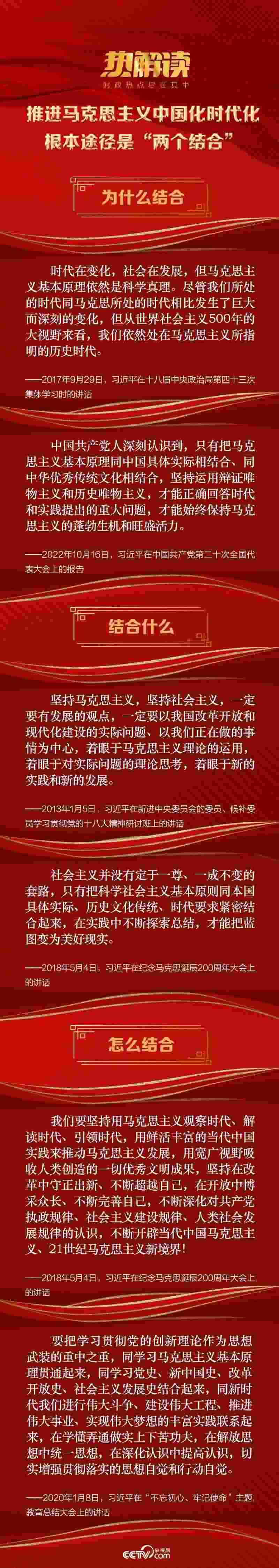 向前追溯,2021年7月1日,習(xí)近平總書(shū)記在慶祝中國(guó)共產(chǎn)黨成立100周年大會(huì)上,首次提出“堅(jiān)持把馬克思主義基本原理同中國(guó)具體實(shí)際相結(jié)合、同中華優(yōu)秀傳統(tǒng)文化相結(jié)合”的重要論斷,并在黨的十九屆六中全會(huì)和黨的二十大報(bào)告中分別進(jìn)一步闡明“兩個(gè)結(jié)合”的實(shí)踐意義和基本內(nèi)涵。