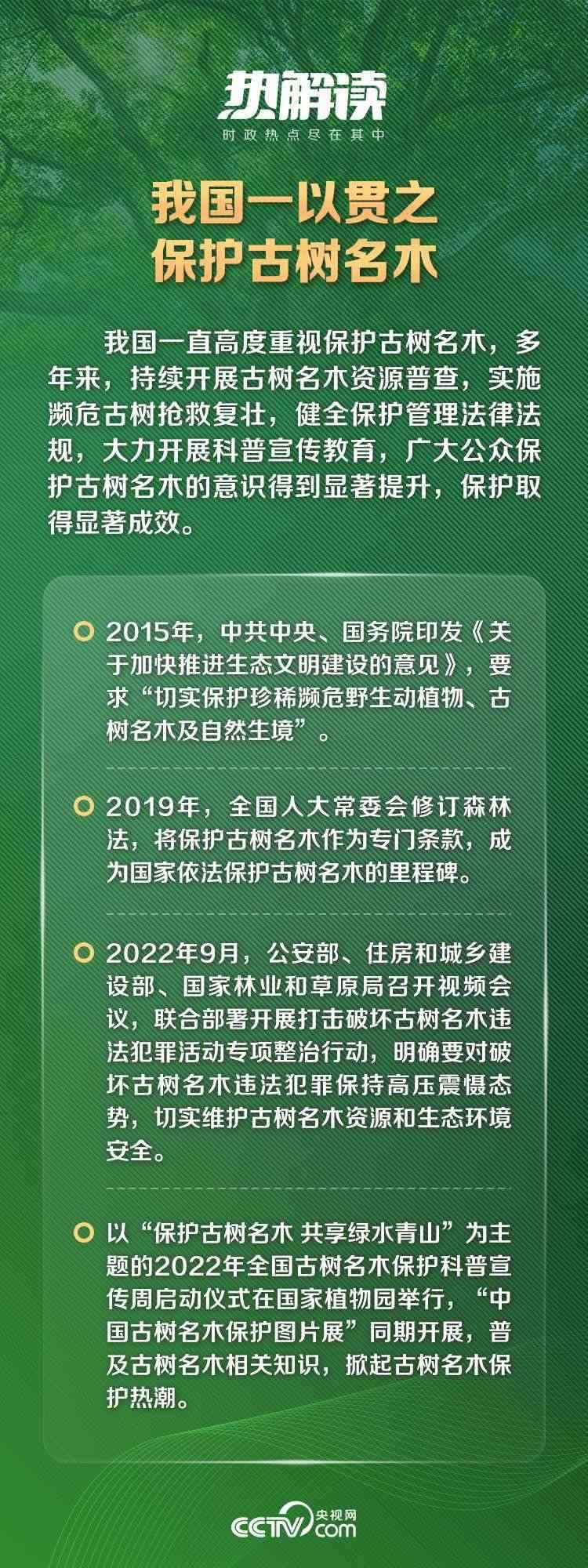 黨的十八大以來,以習(xí)近平同志為核心的黨中央高度重視古樹名木保護工作。