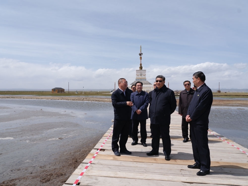 2021年6月8日下午,習(xí)近平在青海海北藏族自治州剛察縣青海湖仙女灣考察。