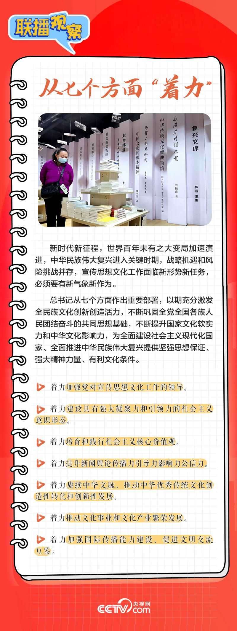 近日,習(xí)近平總書記對宣傳思想文化工作作出重要指示,提出“新的文化使命”“首要政治任務(wù)”等論斷,并要求從七個(gè)方面著力,為全面建設(shè)社會主義現(xiàn)代化國家、全面推進(jìn)中華民族偉大復(fù)興提供堅(jiān)強(qiáng)思想保證、強(qiáng)大精神力量、有利文化條件。
