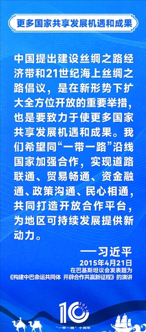 10年前,習近平主席提出共建“絲綢之路經濟帶”和“21世紀海上絲綢之路”,即共建“一帶一路”倡議。過去10年來,習近平主席在多個場合發(fā)表講話和署名文章,為世界描繪了共建“一帶一路”互聯(lián)互通、合作共贏的宏偉藍圖。
