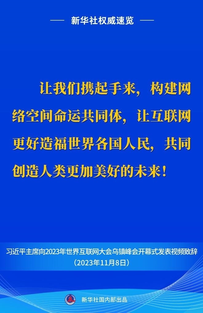 11月8日上午,國(guó)家主席習(xí)近平向2023年世界互聯(lián)網(wǎng)大會(huì)烏鎮(zhèn)峰會(huì)開(kāi)幕式發(fā)表視頻致辭。一起來(lái)看金句。