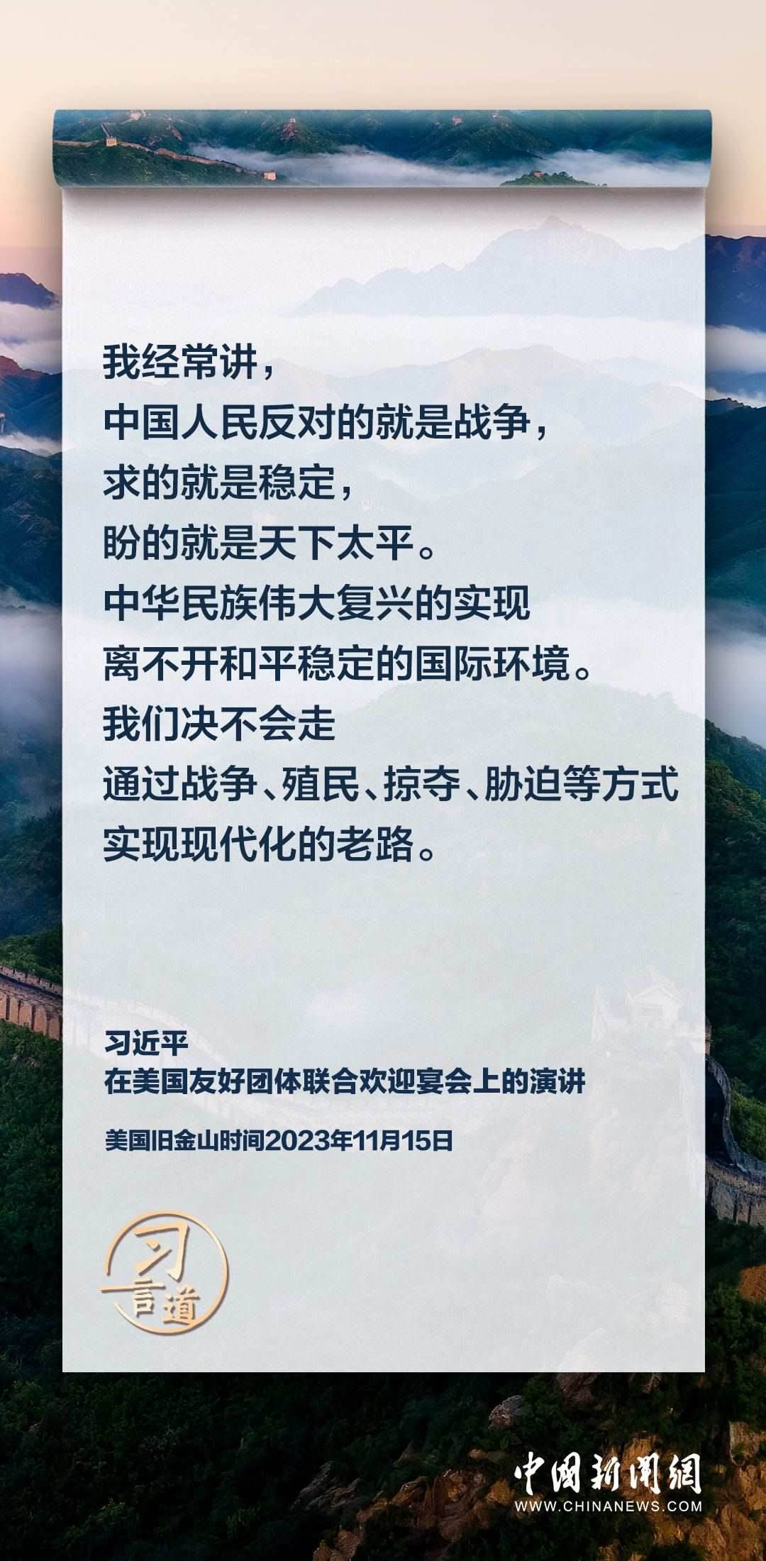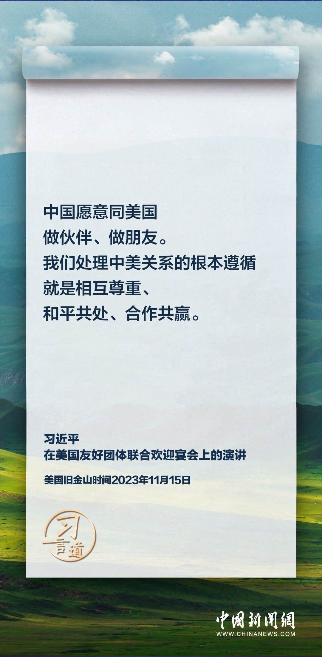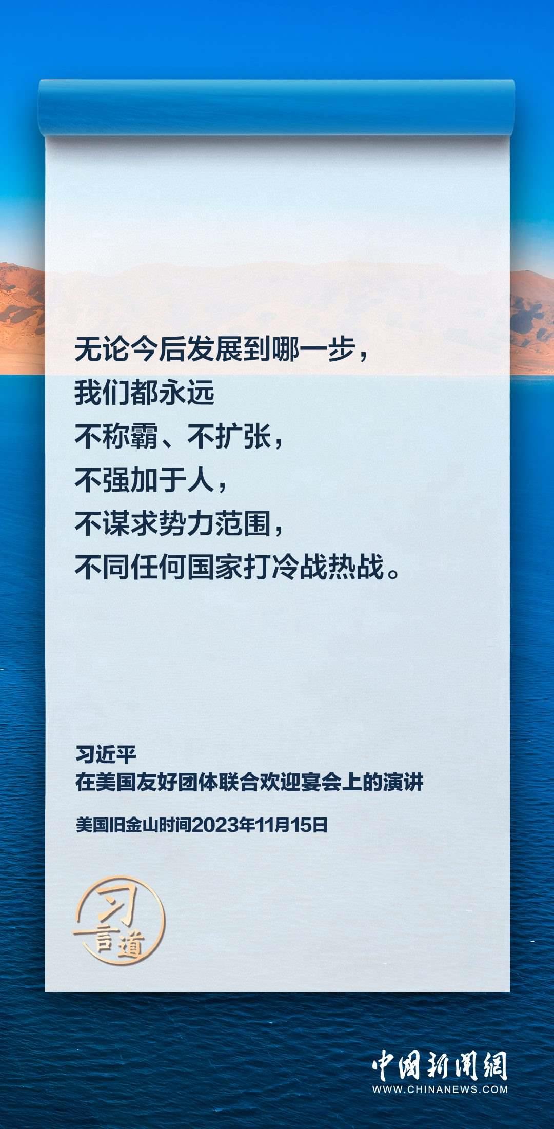 當(dāng)?shù)貢r間11月15日,中國國家主席習(xí)近平在美國舊金山出席美國友好團(tuán)體聯(lián)合歡迎宴會并發(fā)表演講。習(xí)近平在演講中從“我”和“我們”說起,提出中國主張、表明中國立場、展現(xiàn)大國擔(dān)當(dāng),話語擲地有聲。