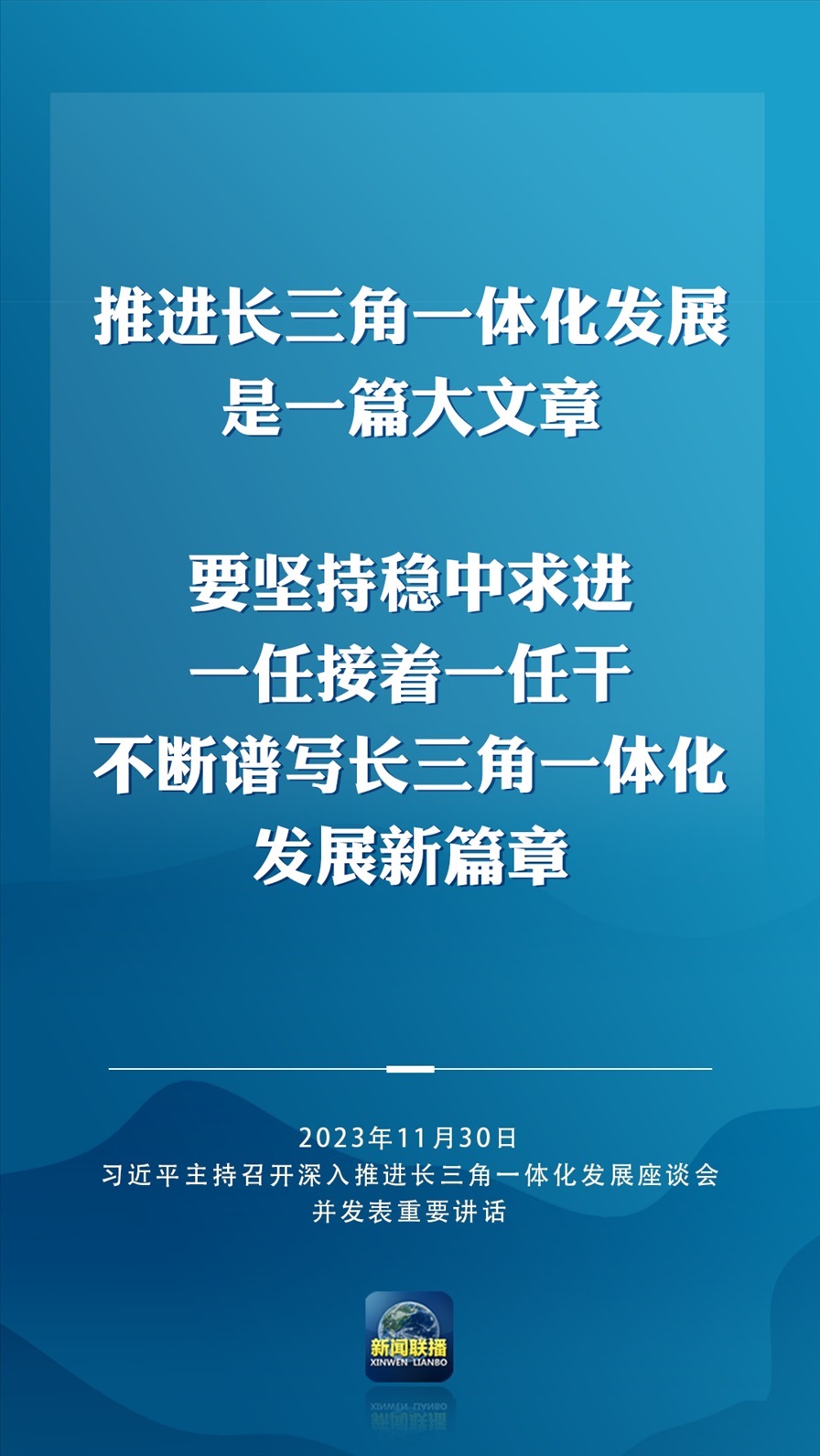 習近平強調,要完整、準確、全面貫徹新發(fā)展理念,緊扣一體化和高質量這兩個關鍵詞,樹立全球視野和戰(zhàn)略思維,堅定不移深化改革、擴大高水平開放,統(tǒng)籌科技創(chuàng)新和產業(yè)創(chuàng)新,統(tǒng)籌龍頭帶動和各揚所長,統(tǒng)籌硬件聯(lián)通和機制協(xié)同,統(tǒng)籌生態(tài)環(huán)保和經濟發(fā)展,在推進共同富裕上先行示范,在建設中華民族現代文明上積極探索,推動長三角一體化發(fā)展取得新的重大突破,在中國式現代化中走在前列,更好發(fā)揮先行探路、引領示范、輻射帶動作用。