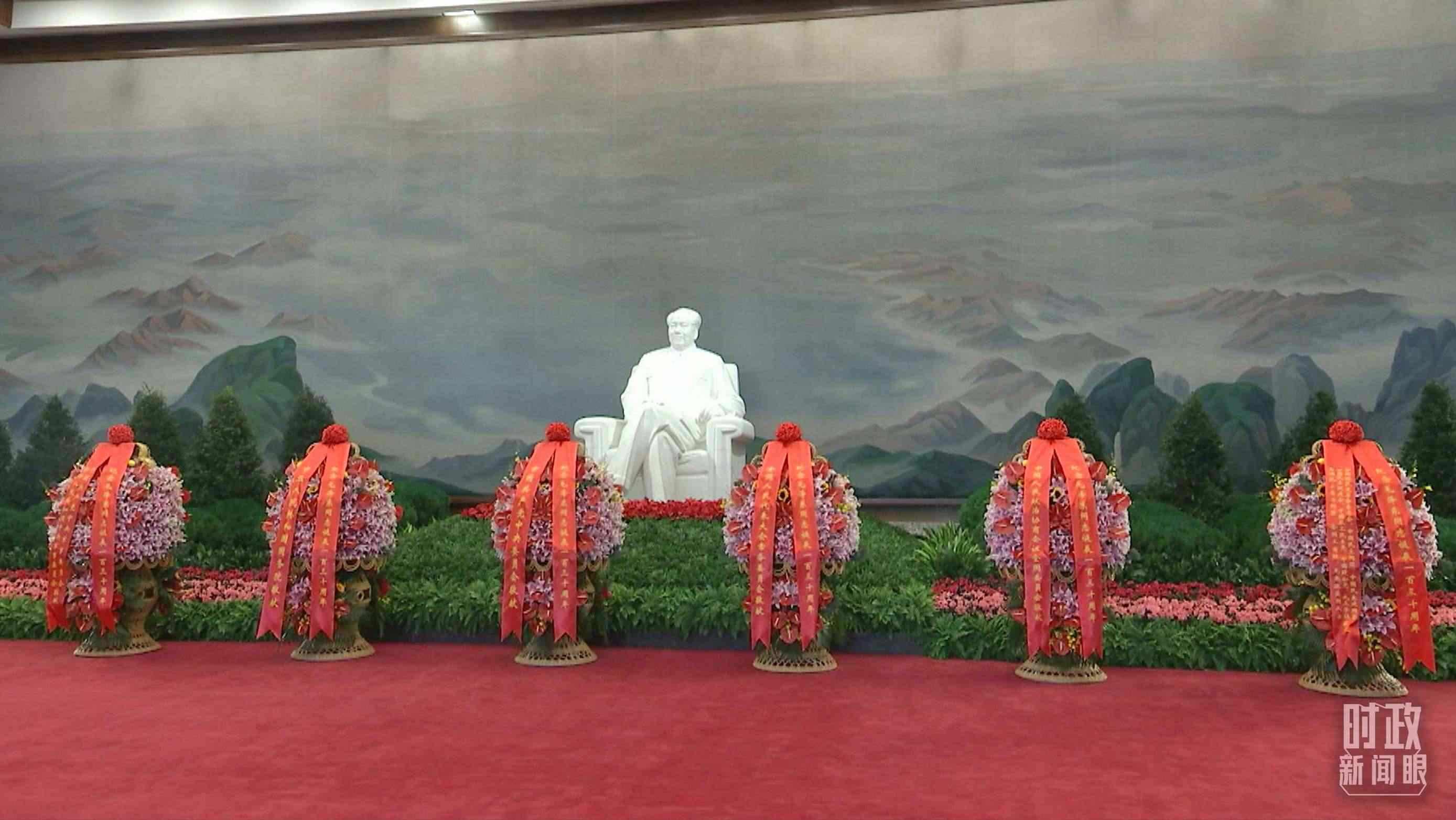 △座談會前,習(xí)近平等領(lǐng)導(dǎo)同志來到毛主席紀(jì)念堂。北大廳內(nèi),中共中央,全國人大常委會,國務(wù)院,全國政協(xié),中央軍委,各民主黨派、全國工商聯(lián)和無黨派愛國人士敬獻(xiàn)的花籃擺放在毛澤東同志坐像正前方。(總臺央視記者郭鴻拍攝)