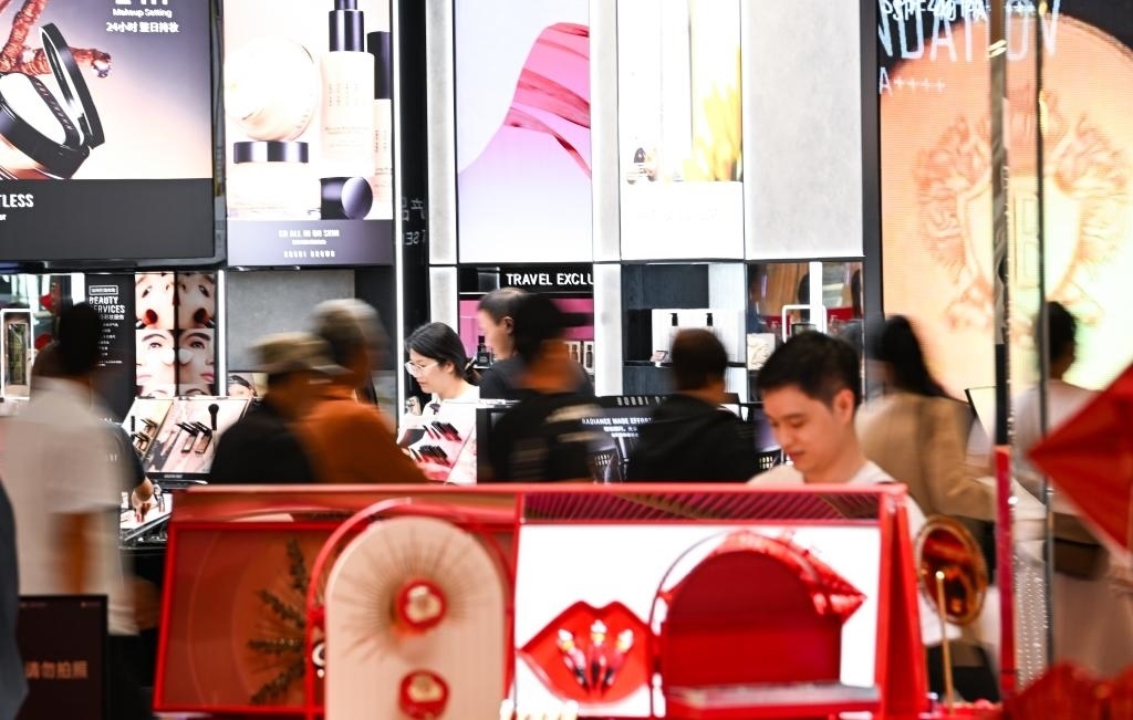 2023年10月28日,消費(fèi)者在位于海南省??谑械暮?趪H免稅城內(nèi)購物。新華社記者楊冠宇 攝