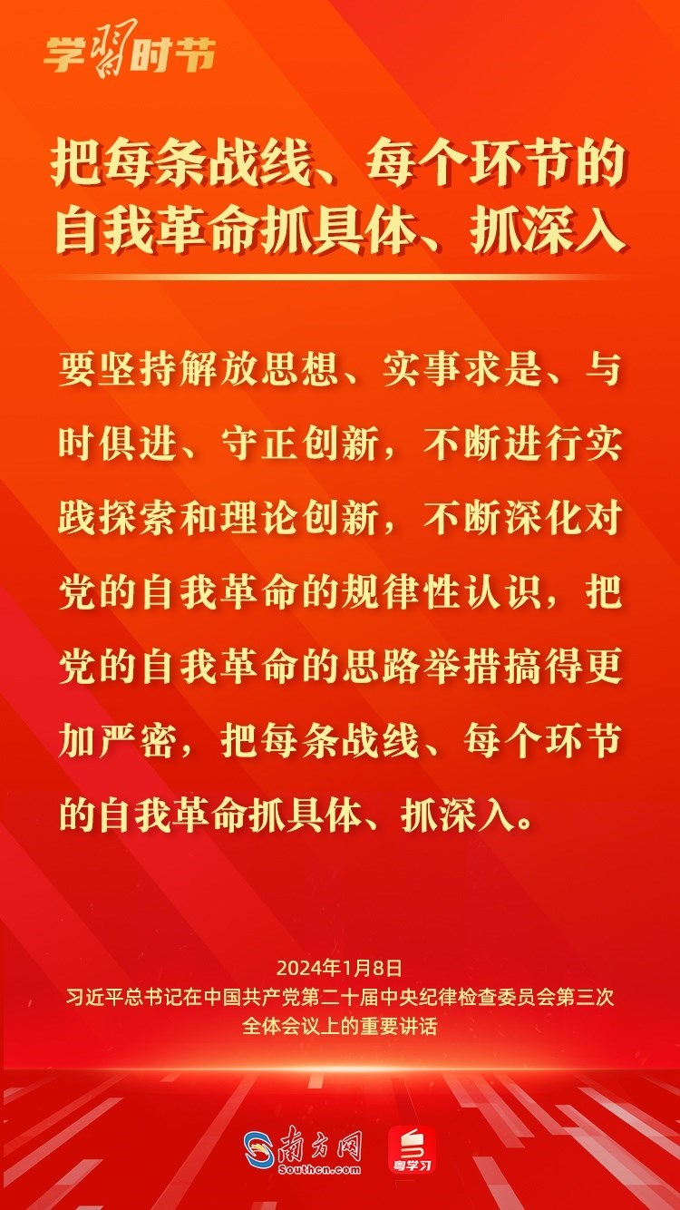 1月8日,中共中央總書記、國(guó)家主席、中央軍委主席習(xí)近平在中國(guó)共產(chǎn)黨第二十屆中央紀(jì)律檢查委員會(huì)第三次全體會(huì)議上發(fā)表重要講話,深刻闡述黨的自我革命的重要思想,對(duì)持續(xù)發(fā)力、縱深推進(jìn)反腐敗斗爭(zhēng)作出戰(zhàn)略部署。