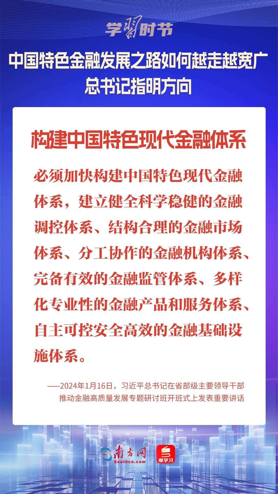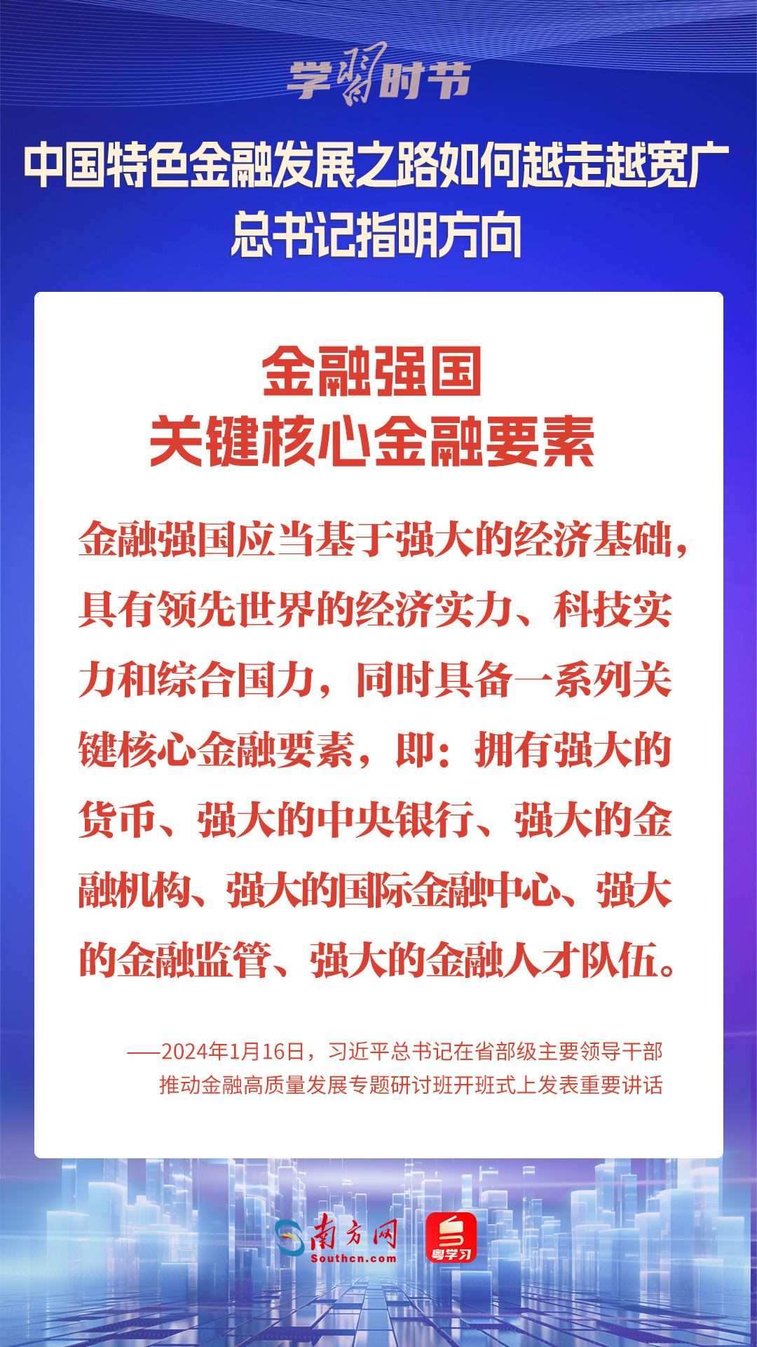 1月16日,中共中央總書記、國家主席、中央軍委主席習近平在省部級主要領導干部推動金融高質量發(fā)展專題研討班開班式上發(fā)表重要講話,為中國特色金融發(fā)展之路指明方向。