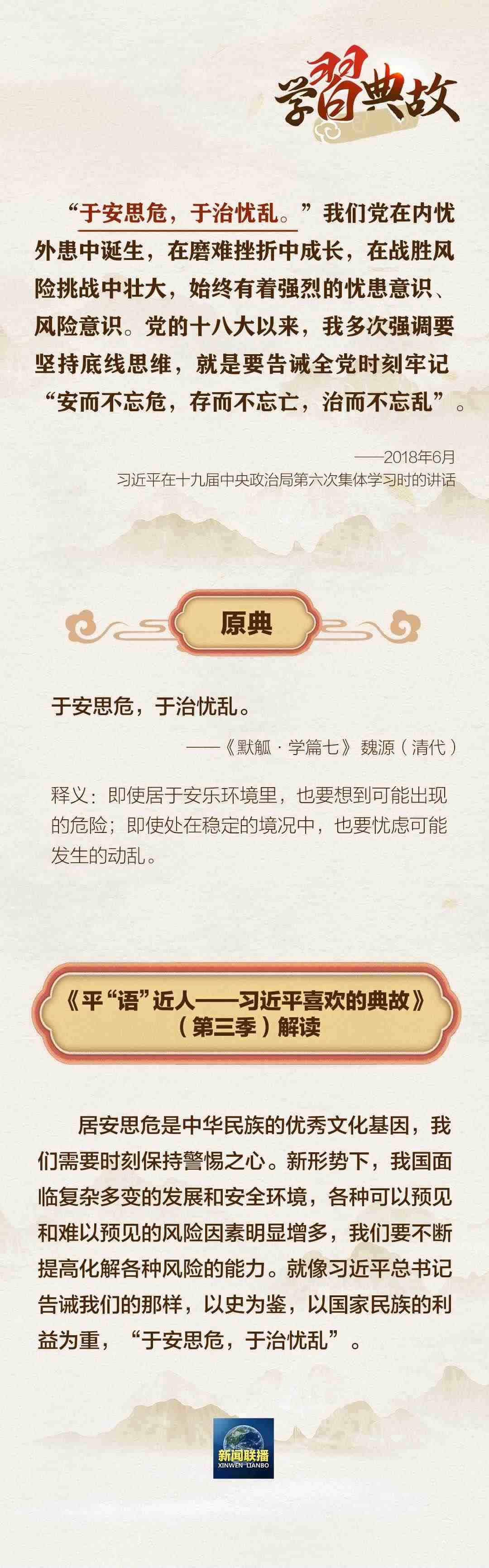 黨的二十大報(bào)告中,習(xí)近平總書記指出,國(guó)家安全是民族復(fù)興的根基,社會(huì)穩(wěn)定是國(guó)家強(qiáng)盛的前提。必須堅(jiān)定不移貫徹總體國(guó)家安全觀,把維護(hù)國(guó)家安全貫穿黨和國(guó)家工作各方面全過(guò)程,確保國(guó)家安全和社會(huì)穩(wěn)定。圍繞“國(guó)家安全”這一主題,總書記曾講到哪些典故?一起學(xué)習(xí)↓↓↓