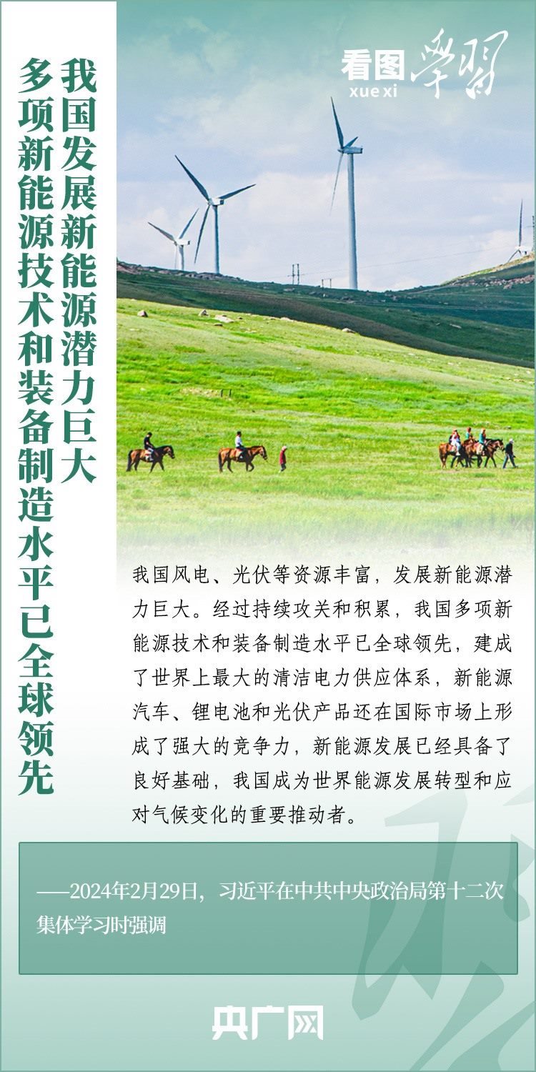 能源安全事關(guān)經(jīng)濟(jì)社會發(fā)展全局。2月29日,習(xí)近平總書記在中共中央政治局第十二次集體學(xué)習(xí)時強調(diào),我們要順勢而為、乘勢而上,以更大力度推動我國新能源高質(zhì)量發(fā)展,為中國式現(xiàn)代化建設(shè)提供安全可靠的能源保障,為共建清潔美麗的世界作出更大貢獻(xiàn)。一起來學(xué)習(xí)!
